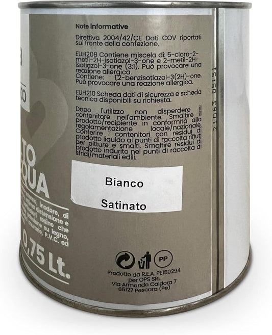 B1ANCO Esmalte blanco al agua mate 750 ml para interior y exterior, inodoro, perfecto para pared, madera, hierro, aluminio y PVC, lata de 750 ml